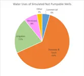 - Pie chart shows reported water uses of wells simulated to be not pumpable after 100 years