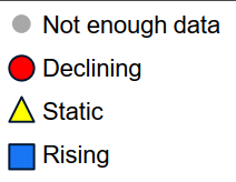 - Since 2000, 67% of wells were declining, 24% of wells had a static trend, and 8% of wells were rising