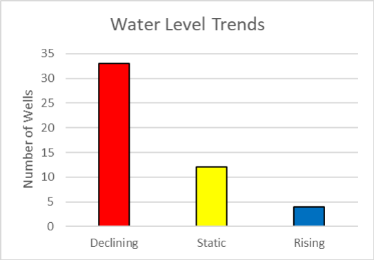 - We looked at all the data and found 49 GWSI wells with enough recent data for a trend*
